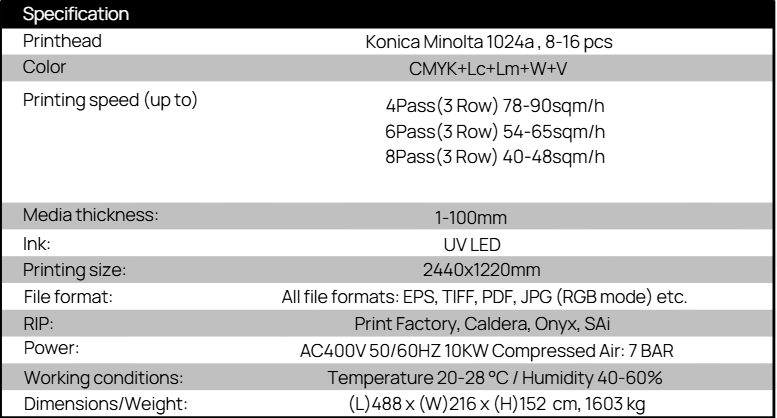 Features include linear motors, water cooled LED lamps, strong vacuum suction, automated pin registration, white ink recirculation and automated height detection for precise and reliable output in demanding environments.