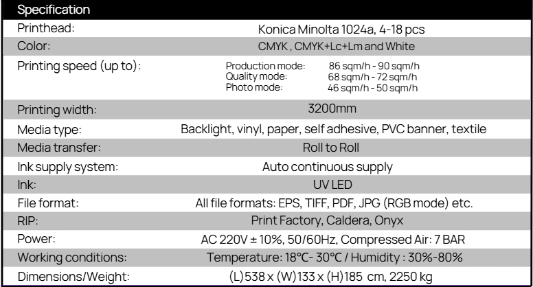 Roll To Roll Roll To Roll Go back FR-3300UV Go back FR-3300UV Description GET A QUOTE BROCHURE ONLINE CATALOG Advanced water-cooled table and LED cold-curing ensure distortion-free printing on heat-sensitive substratesIndustrial-grade chassis with four precision rubber rollers guarantees stable, long-term feeding performanceReinforced structure equipped with dual THK guide rails and a magnetic-levitation motor system for ultra-smooth, high-accuracy printingHigh-capacity tension-control system enables wrinkle-free feeding and supports media rolls exceeding 200 kg GET A QUOTE BROCHURE ONLINE CATALOG Description Advanced water-cooled table and LED cold-curing ensure distortion-free printing on heat-sensitive substratesIndustrial-grade chassis with four precision rubber rollers guarantees stable, long-term feeding performanceReinforced structure equipped with dual THK guide rails and a magnetic-levitation motor system for ultra-smooth, high-accuracy printingHigh-capacity tension-control system enables wrinkle-free feeding and supports media rolls exceeding 200 kg