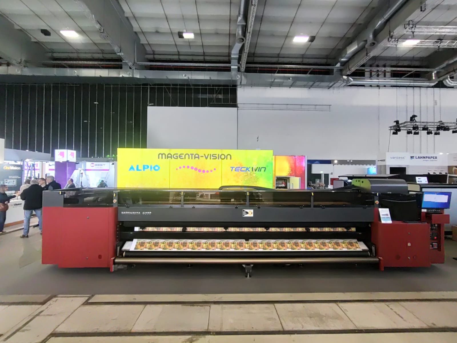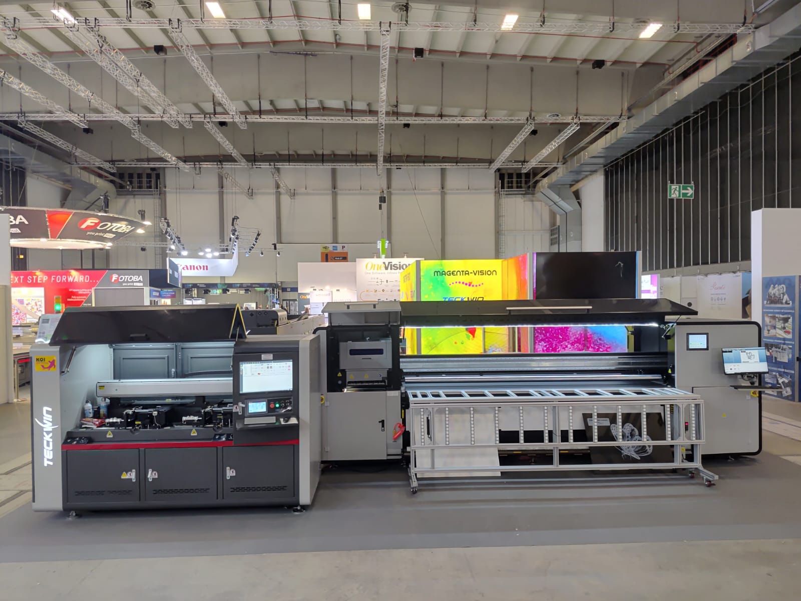 We are ready to show you our full range of printers to meet all your production needs: XXL printing at high speed and high quality with the Teckwin 5-m UV LED roll to roll printer, for prints up to 3.2 m, our Alpio Hybrid printer and for conical object, the Teckwin KOI printer. See you tomorrow in Hall 25 – C40.