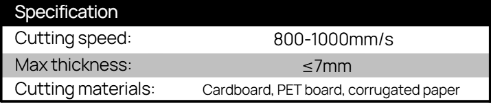 • Designed for fast, precise cutting of soft and medium-density materials including leather, cardboard, corrugated board, rubber, and KT board