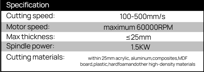 • High-performance milling head for cutting and engraving rigid materials such as acrylic, MDF, aluminum composite, and engineering plastics