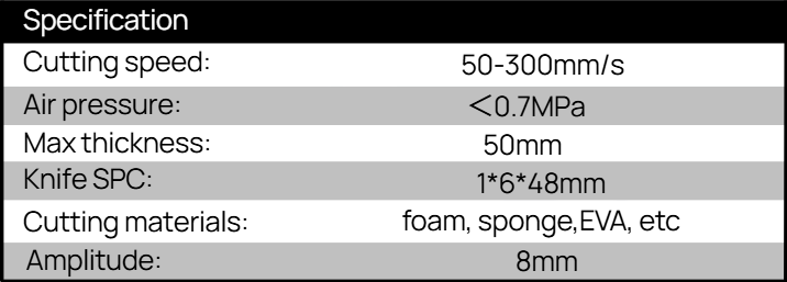 • Powerful pneumatic oscillating tool designed for cutting thick and high-density materials including EVA, foam, sponge, and dense composites